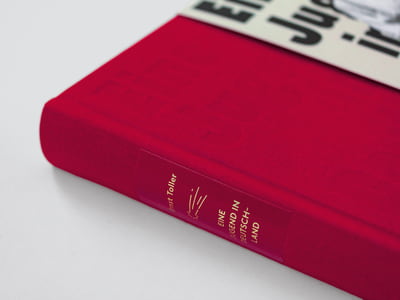 Der Collage-Stil des Covers ist sowohl von der Zeit, in der die Geschichte spielt, als auch von der Idee des Dokumentierens inspiriert. Das rote Leinen spielt auf Tollers Rolle in der sozialistischen Revolutionsbewegung an. Die Schrift Krana Fat von Schick-Toikka, die wir für die Überschriften verwendet haben, ist die moderne Interpretation einer beliebten Displayschrift aus der Zeit Ernst Tollers. Für den Lesetext haben wir Marist von Dinamo verwendet, eine gut lesbare Schrift mit einer warmen Anmutung. Die wiedergegebenen Dokumente haben wir bewusst anders gestaltet als den Haupttext, um ihnen den Charakter von Archivmaterial zu geben.