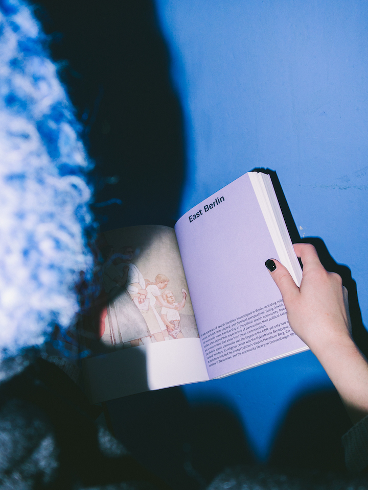 Siyu Mao greift mit der Gestaltung des Buchs die Sehnsüchte und Illusionen, die persönlichen Erinnerungen und die historischen und politischen Rahmenbedingungen auf, die das JMB in seiner Ausstellung zeigt: »Das Cover ist zur Hälfte von einer Klappe verdeckt, die das Titelbild teilt, auf dem eine jüdische Familie in der DDR abgebildet ist. Aufgeklappt kann man das gesamte Bild entdecken. Die Sichtbarkeit jüdischen Lebens in der DDR ist eines der zentralen Themen der Ausstellung, mit dem auch die Gestaltung umgeht«, sagt Siyu Mao. Die Ausstellung selbst zeigt viele Objekte und Zeugnisse von Privatpersonen. Die Bedeutung, die diesen Exponate für die Erinnerung ihrer Besitzer:innen zukommt, nimmt der Katalog auf, indem er die Objekte möglichst groß darstellt. Bildunterschriften sind dabei an der Seite der Bilder um 90 Grad gedreht, um die Wirkung der zum Teil alltäglichen Objekte noch stärker hervorzuheben. »Ich wollte mit meiner Gestaltung die Emotionalität des Themas rahmen und gleichzeitig die Relevanz privater Erinnerungen, Erfahrungen und Überzeugungen für die Entwicklung gesellschaftlicher Lebenswelten zeigen«, so Siyu Mao.