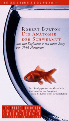 Burtons Riesenwerk handelt von einem Leiden, das jeder kennt. Die moderne Medizin möchte es auf den klinischen Begriff der Depression reduzieren, aber damit ist es nicht getan. Denn die Melancholie ist von der Condition humaine nicht zu trennen; nur dem Stumpfsinnigen ist sie unbekannt.*Der Autor dieses Buches spricht zu uns aus einer Distanz von mehr als dreihundert Jahren; doch es fällt uns nicht schwer, unsere eigenen Erfahrungen in den seinigen wiederzuerkennen. Seine lebenslange Schwermut äußert sich empört, aber nicht verbittert, illusionslos, aber im Gesprächston eines Menschen, dem man vertrauen kann. Was er uns hinterlassen hat, ist keine medizinische Abhandlung, sondern ein Weltpanorama, in dem von Liebe und Religion, Wahn und Sex, Politik und Krieg ebenso die Rede ist wie von der »schwarzen Galle«.*Burton ist ein glänzender Erzähler und ein scharfsinniger Psychologe. Paradoxerweise ist sein Werk zu einem Unterhaltungsschlager der englischen Literatur geworden. Noch im Jahre 2001 hat ein Kritiker behauptet, es sei »the book to end all books«. Es ist höchste Zeit, dem deutschen Publikum diesen Text wieder zugänglich zu machen.*Ulrich Horstmann, selbst ein Melancholiker von hohen Graden, hat aus den 1400 Seiten des Originals einen philologisch getreuen Extrakt gezogen und einen klugen Essay beigesteuert.