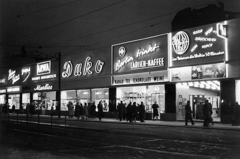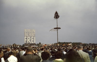 Zugleich spitzten sich die Spannungen zwischen den Machtblöcken zu. Der Wettstreit der Systeme war auch im Stadtbild – durch Propaganda sowie unterschiedliche Waren- und Kulturangebote – allgegenwärtig. Die Fotografien aus der bpk-Bildagentur bringen die Schicksalsjahre Berlins im Spannungsfeld von Aufbruch, Wiederaufbau und Systemkonflikt nahe.